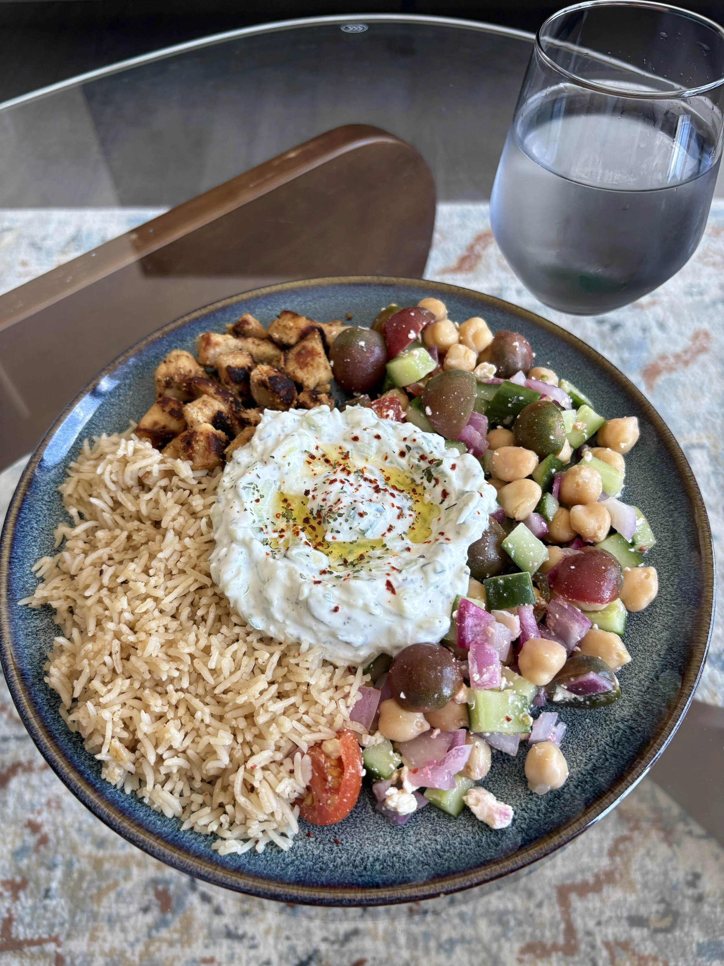 I am showing you here how to make all the individual components, but you can absolutely take shortcuts here. Use rotisserie chicken, pre-cooked rice, or store-bought tzatziki if you want. But if you make all the parts from scratch (which takes about an hour), the payoff is huge. The dish feels restaurant-level but made in your kitchen.